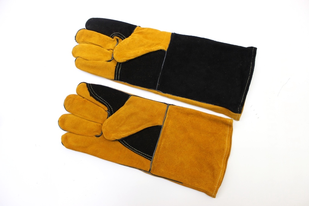 Краги спилковые жел./черн. с усил. лад. удлин. кевлар (ДОКА) (RX4018,16",АВ)