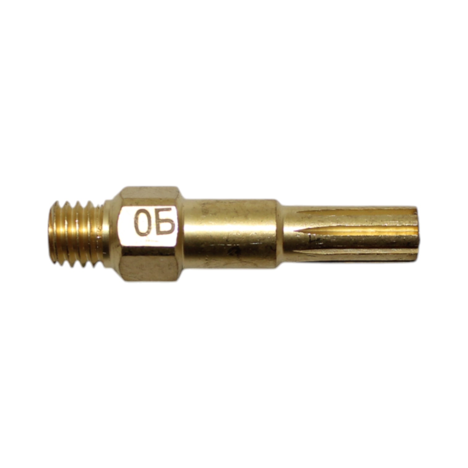Латунный внутренний мундштук №0Б для жидкотопливного бензинового резака РБ-300. Толщина разрезаемого металла 5–8 мм. Мундштук присоединяется (вкручивается) в головку резака при помощи резьбы М8х1. На цилиндрическую часть мундштука устанавливается диффузор.