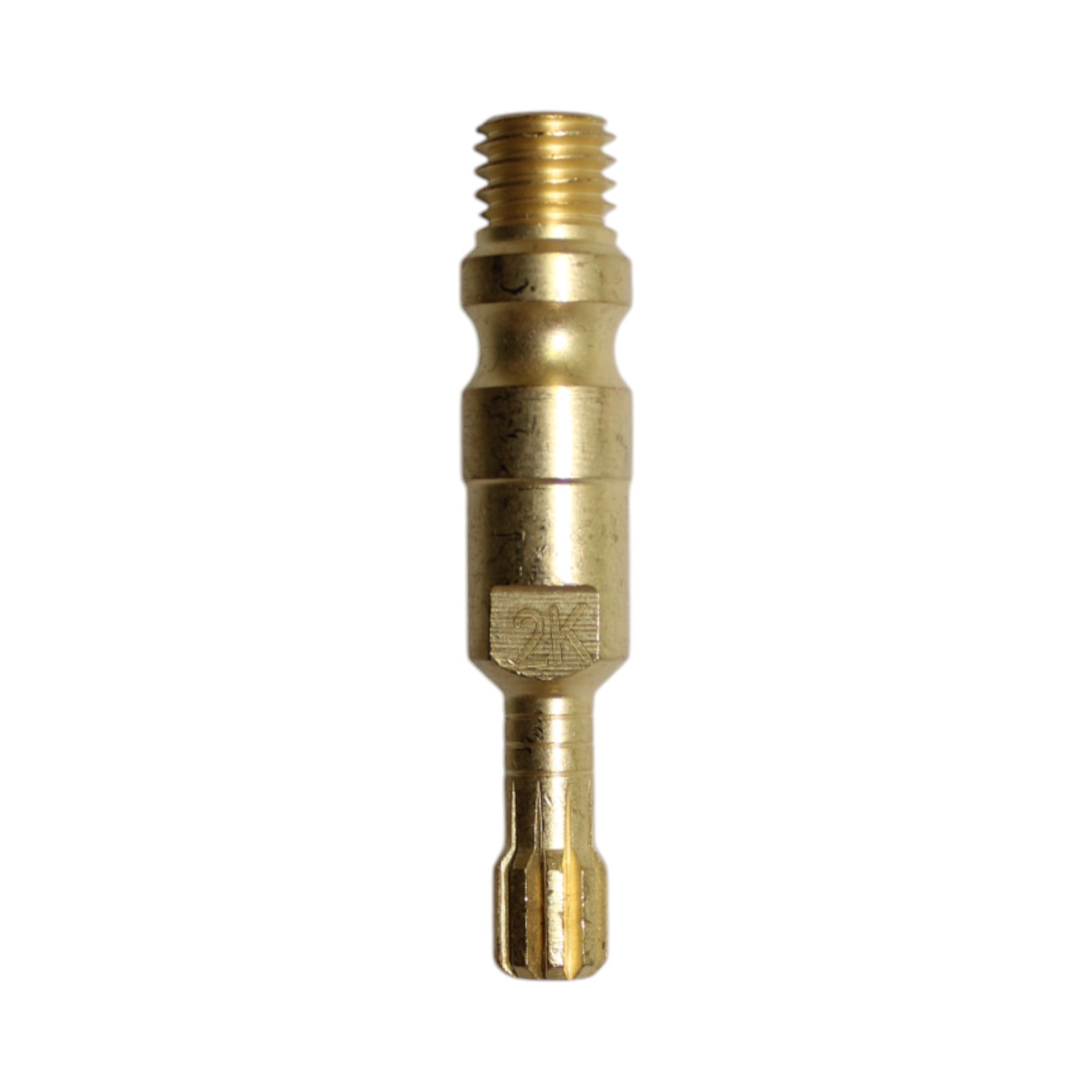 Латунный внутренний мундштук №2К для керосинового резака РК-300. Устанавливаются с мундштуками наружными к РК-300 №1К/1КЗ. Толщина разрезаемого металла 15–30 мм. Мундштук с шлицевыми пазами для выхода подогревающего пламени. Внутренний мундштук имеет присоединительную резьбу М8х1 для крепления к головке керосинореза.