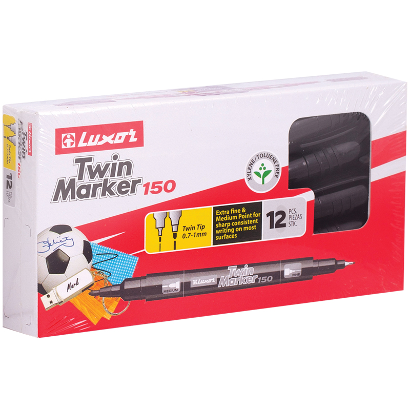 Маркер перманентный двухсторонний Luxor "150" черный, пулевидный, 0,7/1мм 3011(12шт) 233834