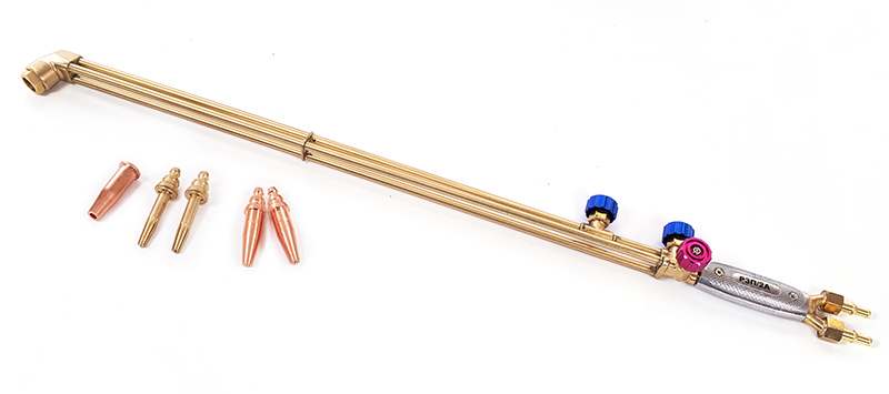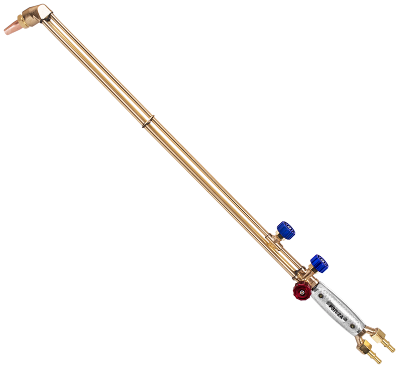 Резак трехтрубный газо-кислородный с внутрисопловым смешением газов предназначен для резки раскроя и разогрева деталей, заготовок, листового и сортового проката из черных металлов. За счет внутрисоплового смешения газов резаки имеют повышенную стойкость к обратному удару и способны длительное время работать в тяжелых условиях. Резак имеет стандартные мундштуки «ANM» и «PNM» и совместим с мундштуками других производителей. Имеет возможность работы на ацетилене или пропане в зависимости от установленного мундштука.