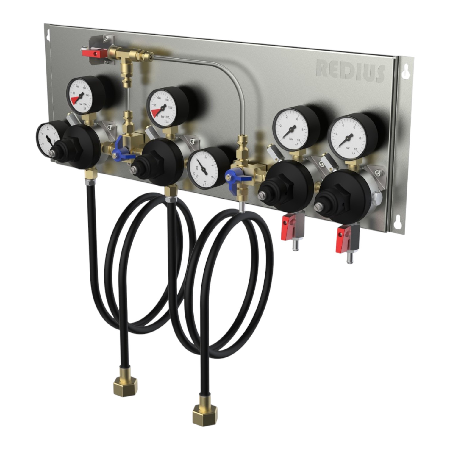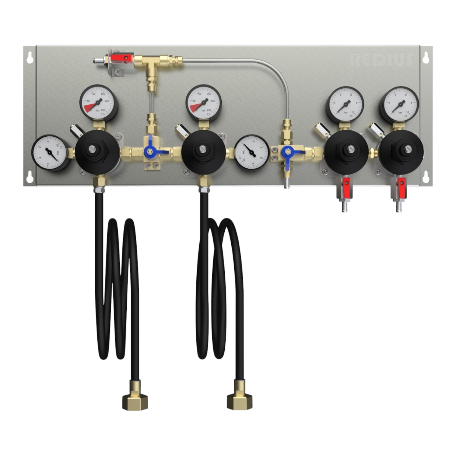 · Для возможности установки и подачи нескольких разных давлений для разных потребителей